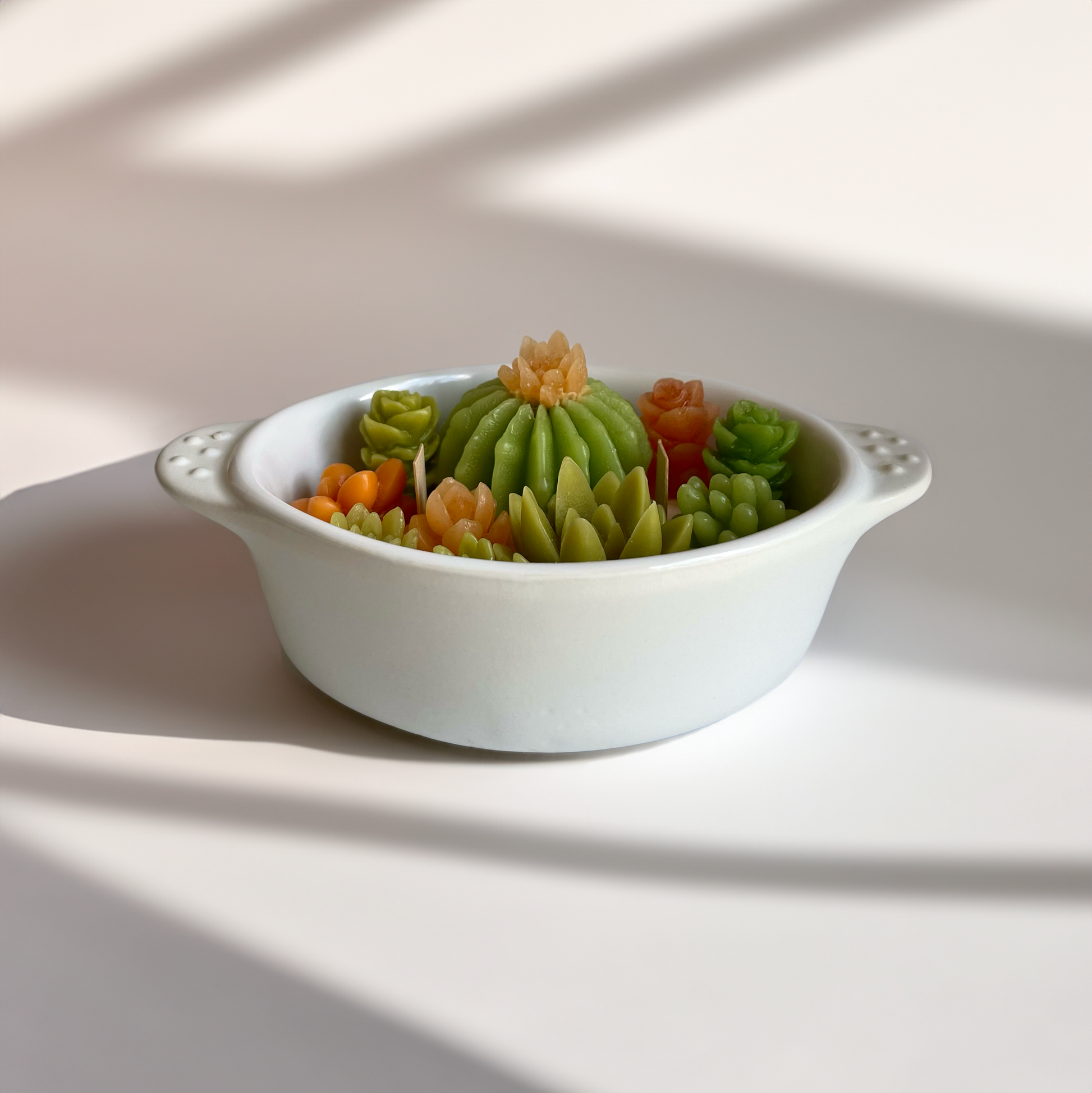 Bamboo + Melon // White Stoneware Ramekin Kaktus Kandela