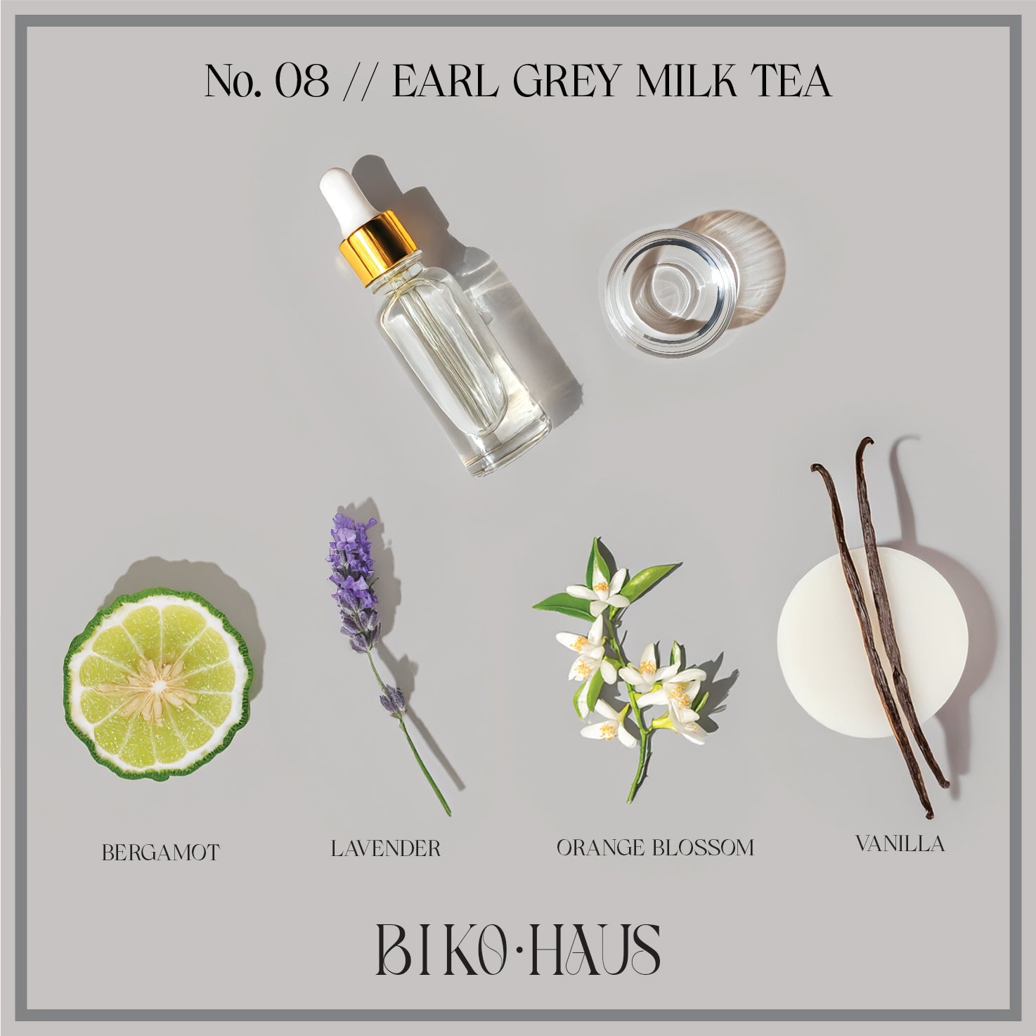 Indulge in our soothing blend of bergamot, orange blossom, lavender, and vanilla with our Earl Grey Milk Tea scented candle -- a staple for any boba lover. Hand-poured into a sleek stone grey konkreto jar, this candle will add a touch of natural modern elegance to any room. Light it up and let the calming aromas transform your home.