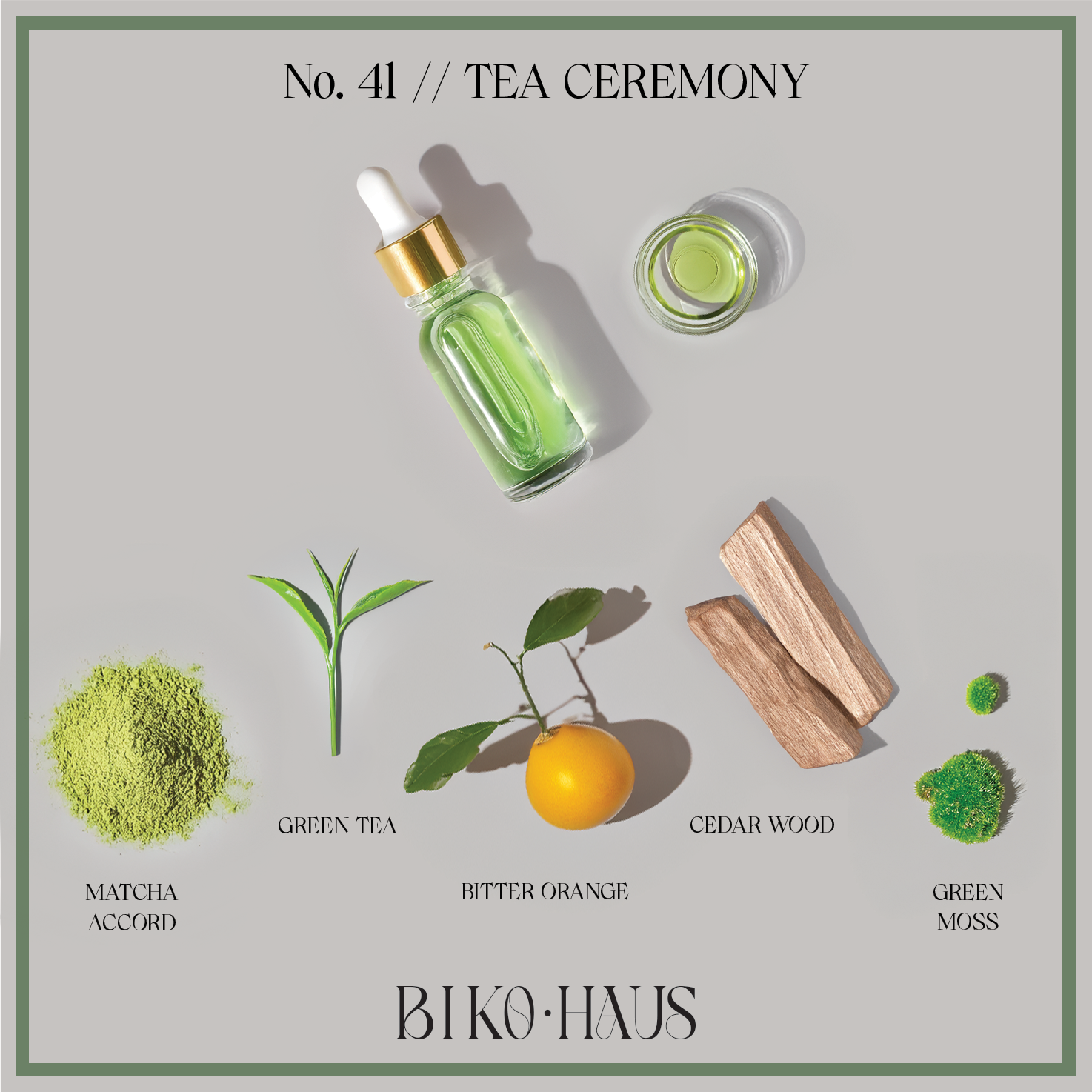 A harmonious blend of nature's finest elements, Tea Ceremony captures the essence of a traditional Japanese tea ceremony. The deep, earthy notes of Cedar Wood and Green Moss ground the scent, while the invigorating aroma of Bitter Orange adds a touch of citrus brightness. At its heart, the earthiness of Matcha Accord and Green Tea intertwine, creating a soothing and contemplative experience -- offering a moment of peace and reflection, transporting you to a serene Japanese tea house.