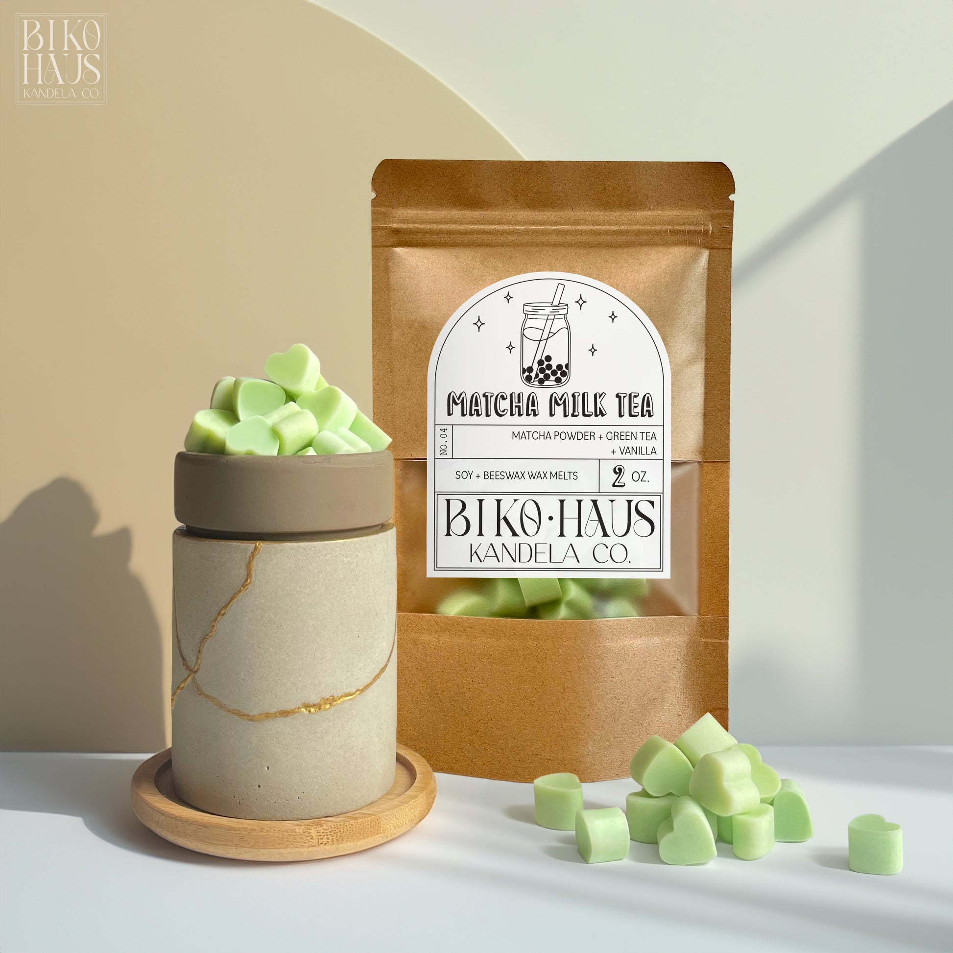 Indulge in the cozy vibes of our Matcha Milk Tea wax melts. Our aromatic blend of matcha powder and green tea leaves, complemented by creamy vanilla, will transport you to your favorite tea house. Ignite your senses with our special blend of soy wax and beeswax that will keep your space smelling amazing for hours on end. Melt, relax, and enjoy!