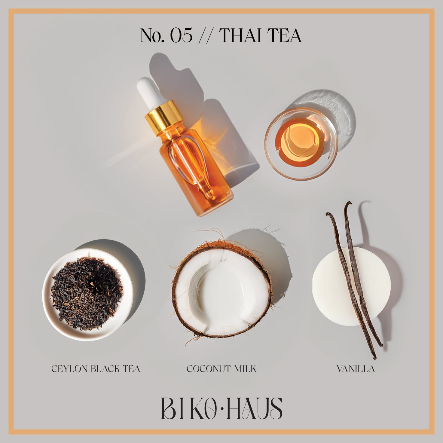 Crafted with fragrant ceylon black tea, creamy coconut milk, and vanilla, this sweet and herbal scent is a must-have for OG Thai Tea enthusiasts. Our hand-poured blend of soy and beeswax provides a powerful, calming, and enduring aroma that will infuse your living space with the delicious essence of tea.