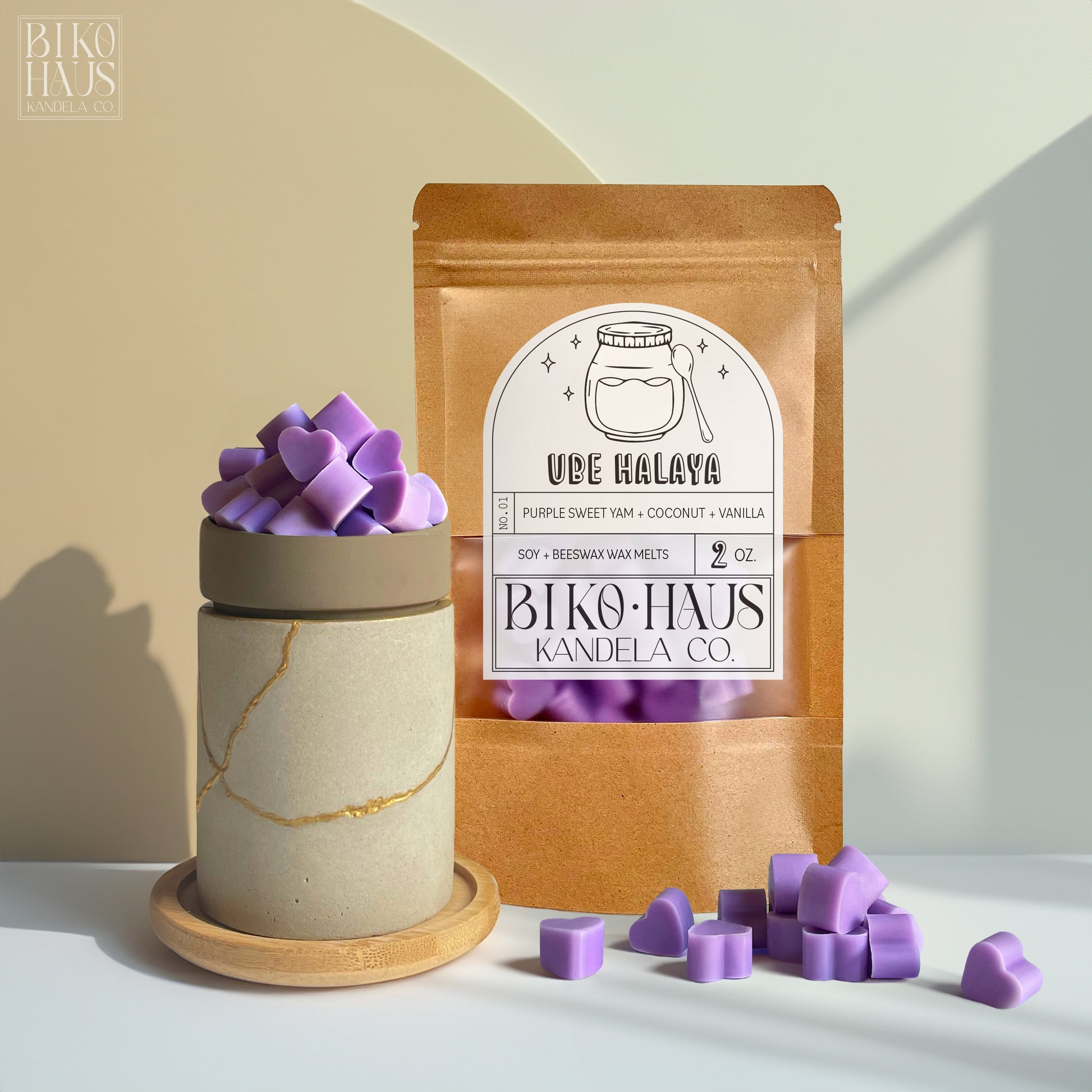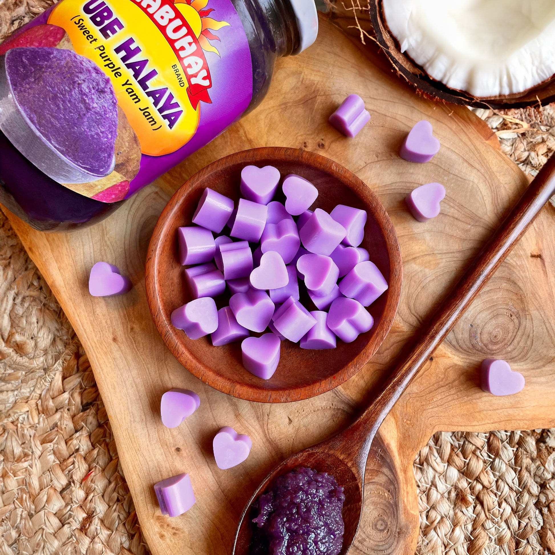 Revel in the sweet and mellow aroma of Ube Halaya with our miniature heart-shaped wax melts. Inspired by the popular purple dessert, this intoxicating fragrance of sweet purple yam will fill your space with a hint of vanilla and coconut -- making it feel like you've stepped right into a traditional Filipino Panaderia.